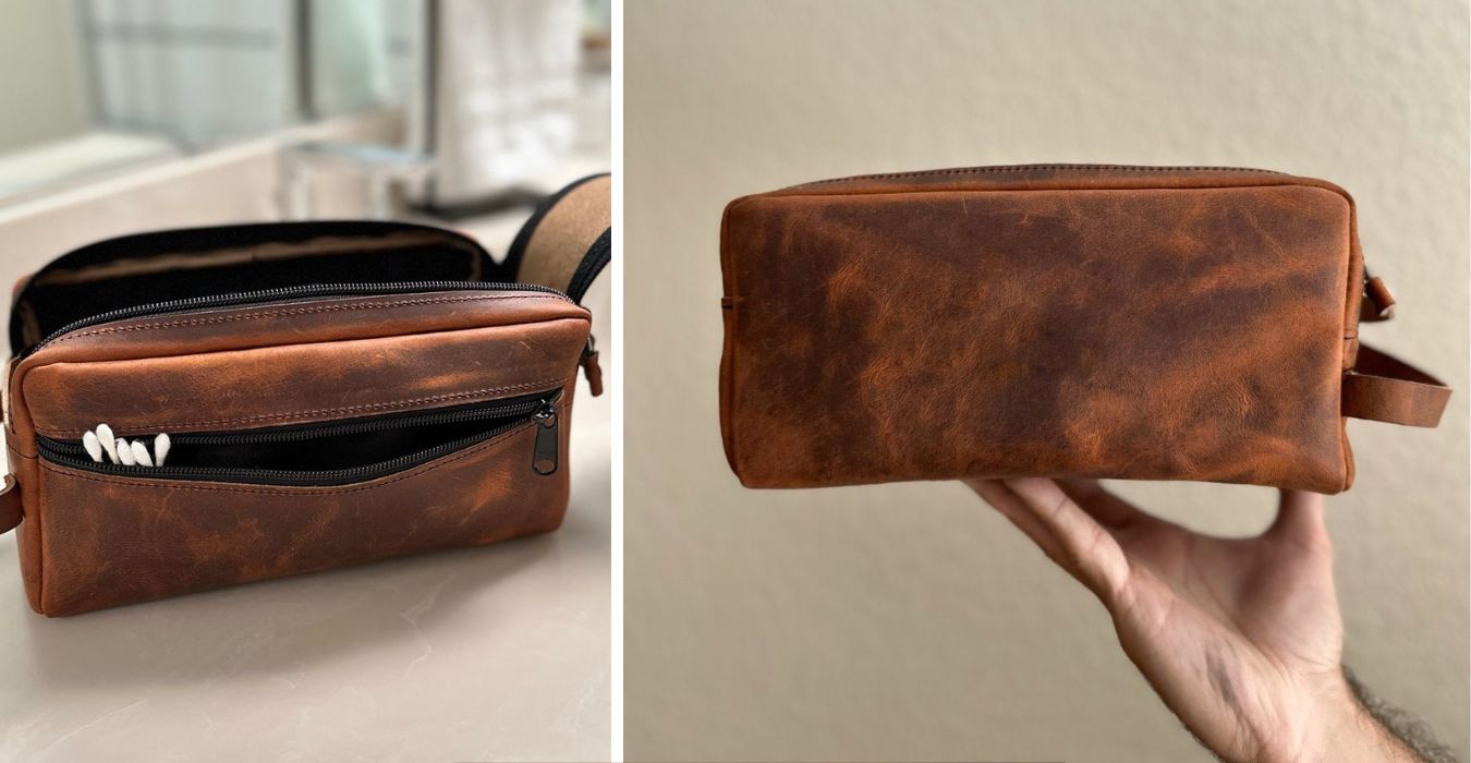 The perfect blend of style and practicality. Our handcrafted Dopp bags will keep your essentials safe on the road, while the luxurious material will make you feel like a jet-setter. They make a great gift for both men and women.
