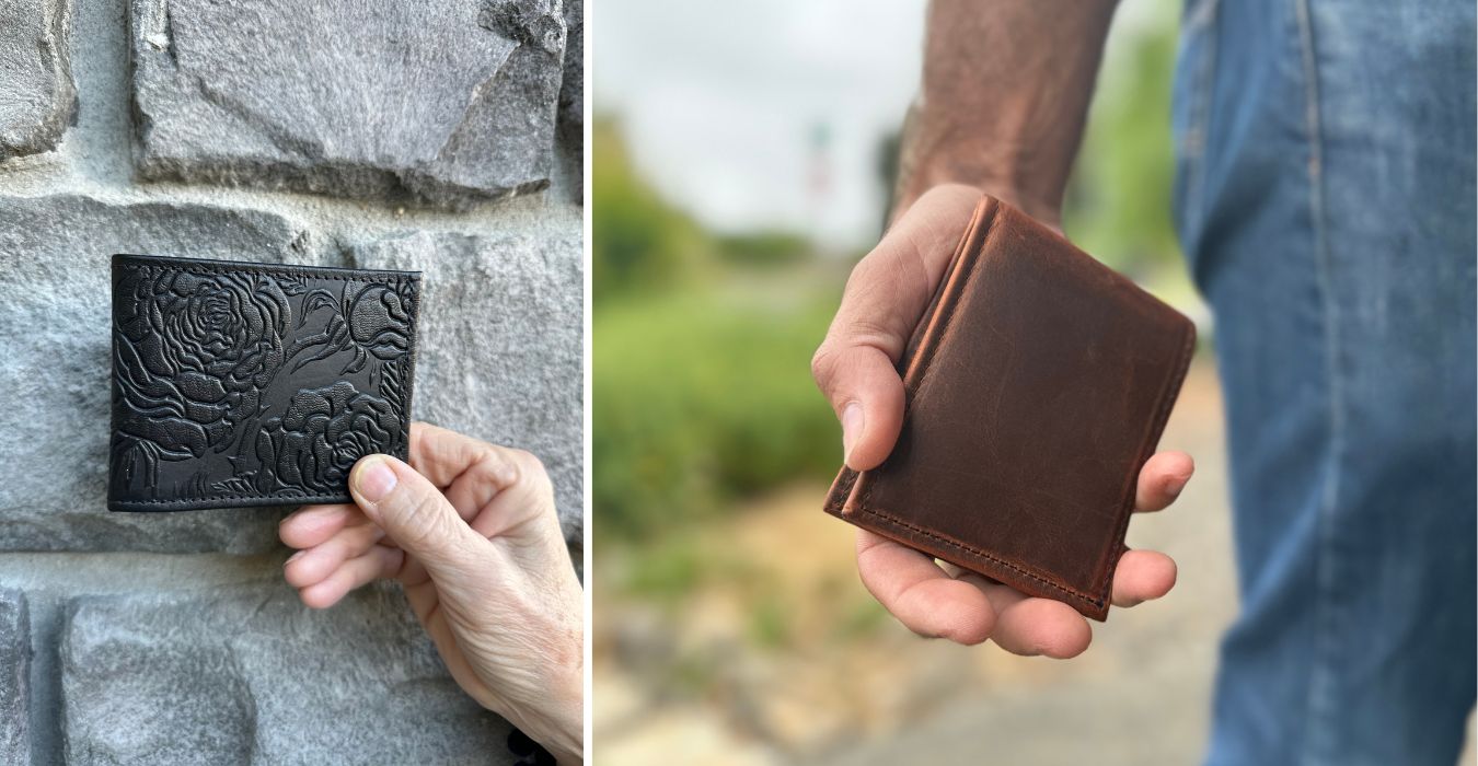 Hand Made in the USA with premium domestic leather, our Bi-Fold Leather Wallets are fully lined, contain 6 card slots, 2 pockets & a bill compartment.
