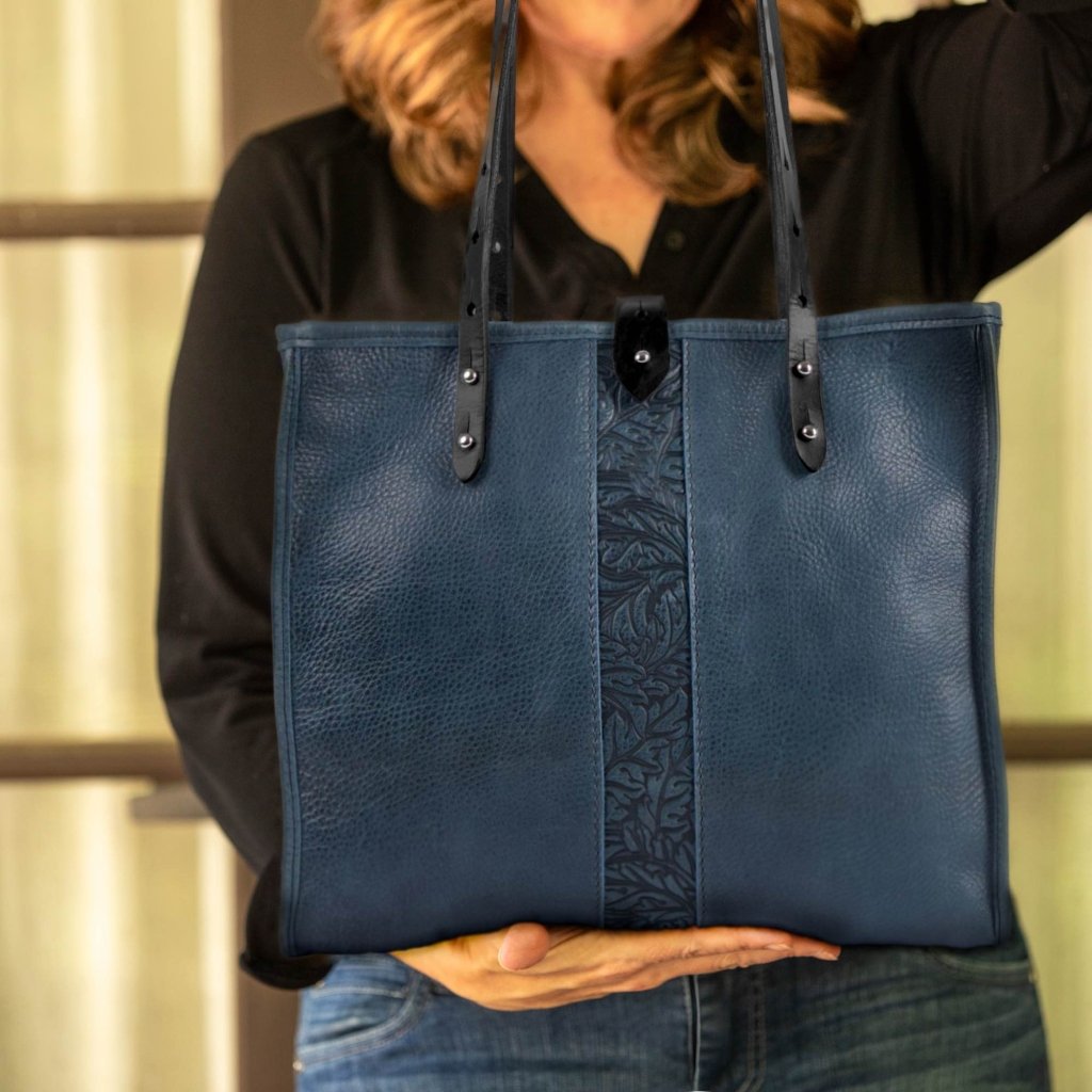 It’s a classic tote shape with an Oberon twist. Large enough for lots of cargo without being too bulky. This all leather structured bag is minimalist in design with maximal function. The more you use it the better it gets, becoming soft and supple but keeping its shape. It doesn't get better than this.