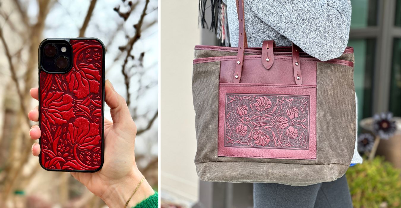 This beautiful floral, gorgeously rendered in leather will fulfill your need for quality accessories and artistic expression.